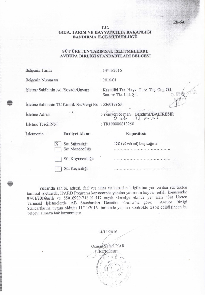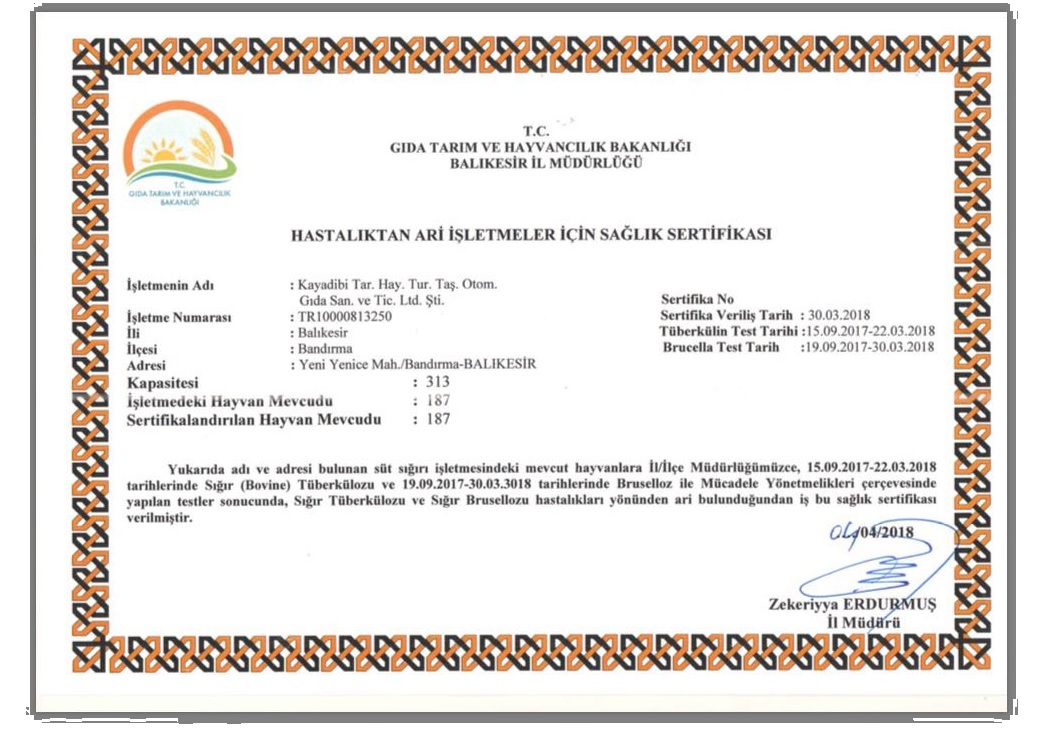 Çiftliğimiz AB Standartlarında üretim yapan ve Hastalıktan Ari bir işletmedir.